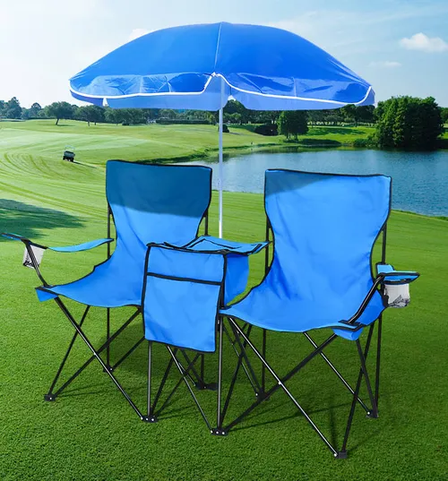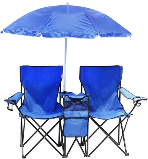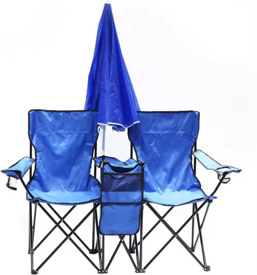 All-in-One Double Camping Chair – Built-in Umbrella, Cooler & Lightweight for Outdoor Fun