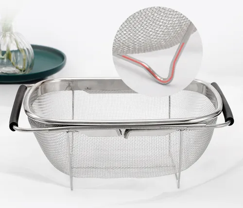 Stainless Steel Expandable Multi-Purpose Colander Basket – Kitchen Sink Strainer for Washing Vegetables, Fruits